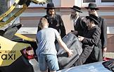 Ситуация в Пинске. Евреи-хасиды с багажом на городской улице. Из-за ограничений, связанных с коронавирусом, брацлавские хасиды не могут попасть к местам паломничества на Украине.