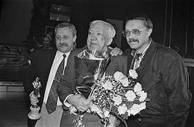 Фестиваль "Золотой Остап". Слева направо: телеведущий Леонид Якубович, директор "Цирка на Цветном" Юрий Никулин и фотограф Юрий Рост на фестивале.