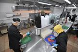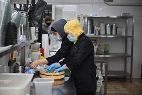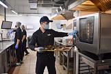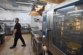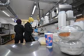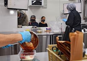 Работа сервиса готовой еды "Кухня на районе" (Local Kitchen). Повар на кухне во время выдачи еды.