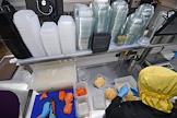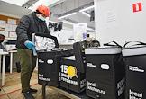 Работа сервиса готовой еды "Кухня на районе" (Local Kitchen). Сотрудник службы доставки во время упаковки еды в сумки.