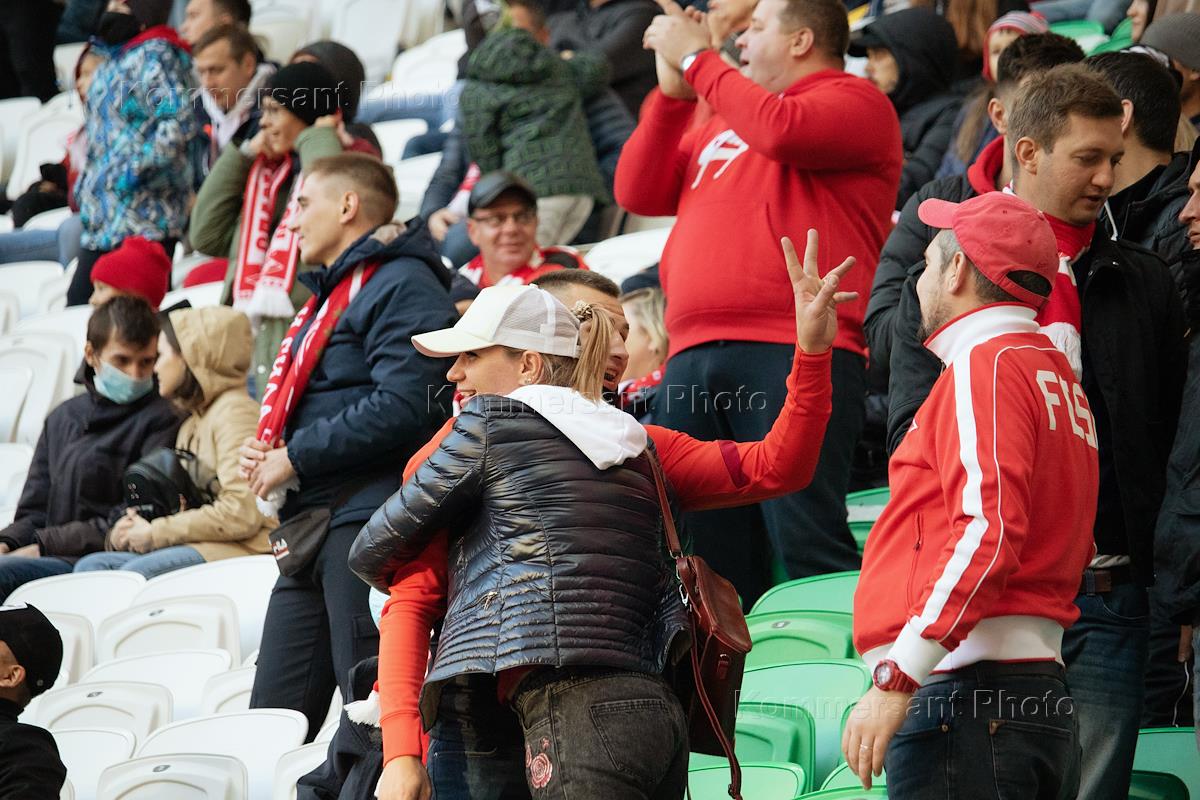 Российская Премьер-Лига (РПЛ). Тинькофф - Чемпионат России по футболу 2020/2021. 8-й тур. Матч между командами "Рубин" (Казань) и "Спартак" (Москва) на стадионе "Ак Барс Арена" (Казань Арена). Болельщики во время матча.