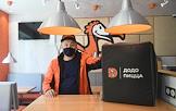 Работа ресторана сети ресторанов быстрого питания, специализирующейся на пицце, "Додо Пицца". Курьер службы доставки с фирменным коробом.
