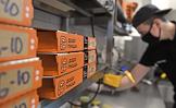 Работа ресторана сети ресторанов быстрого питания, специализирующейся на пицце, "Додо Пицца". Сотрудник ресторана во время упаковки пиццы.