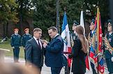 Церемония вручения государственных и областных наград в рамках празднования Дня зарождения российской государственности прошла возле памятника "Тысячелетие России". Губернатор Новгородской области Андрей Никитин (в центре) во время церемонии.