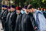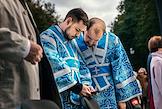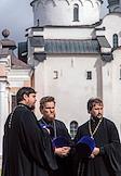 Церемония вручения государственных и областных наград в рамках празднования Дня зарождения российской государственности прошла возле памятника "Тысячелетие России". Священнослужители перед началом церемонии.