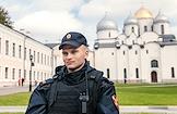 Церемония вручения государственных и областных наград в рамках празднования Дня зарождения российской государственности прошла возле памятника "Тысячелетие России". Сотрудник Росгвардии во время церемонии.
