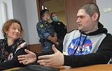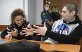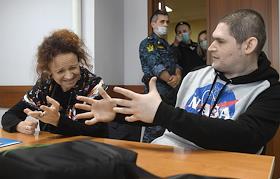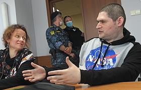 Участник движения "Новое величие" Павел Ребровский (справа), осужденный по статье о создании экстремистского сообщества и отпущенный под подписку о невыезде, и адвокат Мария Эйсмонт (слева) во время заседания Люблинского районного суда.