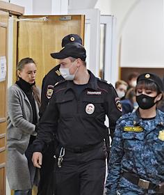 Избрание меры пресечения в виде заключения под стражу в отношении генерального директора реставрационно-строительной компании "Меандр" Елены Завадской и заместителя генерального директора компании "Меандр" Евгения Ярмоша, обвиняемым в хищении (ч. 4 ст. 159 УК) более 191 млн руб., полученных в качестве аванса на выполнение ремонтно-реставрационных работ в Санкт-Петербургской государственной консерватории имени Н.А.Римского-Корсакова, в Басманном районном суде. Генеральный директор компании "Меандр" Елена Завадская во время заседания суда.