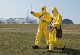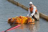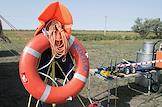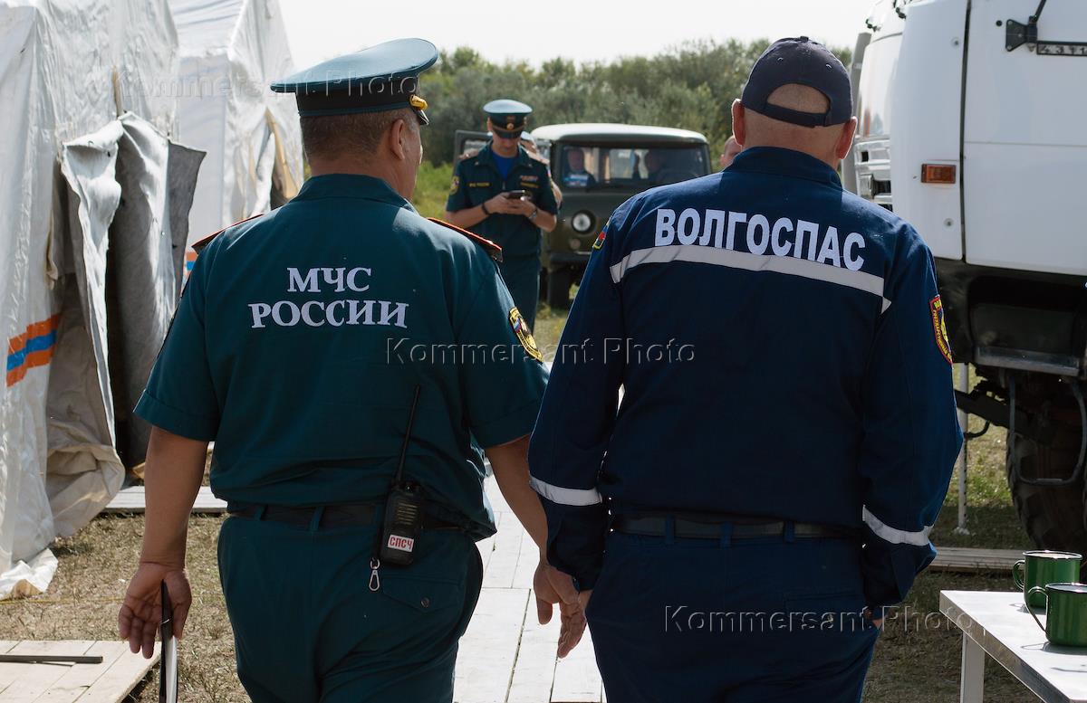 Комплексные практические учения по ликвидации аварийного разлива нефти на нефтепроводе в Волго-Ахтубинской пойме Красноярского района. Участники во время учений.