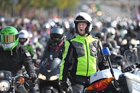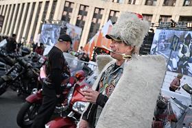 Московский осенний мотофестиваль в честь закрытия сезона прошел от проспекта Академика Сахарова до Парка имени Горького. Участник мотоклуба "Мотобратия во Христе" преед началом мотопарада.