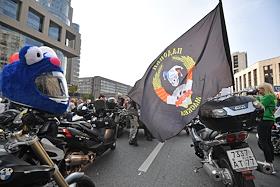 Московский осенний мотофестиваль в честь закрытия сезона прошел от проспекта Академика Сахарова до Парка имени Горького. Члены мотоклуба "Падонки мира" во время мотопарада.