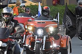 Московский осенний мотофестиваль в честь закрытия сезона прошел от проспекта Академика Сахарова до Парка имени Горького. Сотрудники ОМОН во время мотопарада.