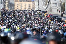 Московский осенний мотофестиваль в честь закрытия сезона прошел от проспекта Академика Сахарова до Парка имени Горького. Участники перед началом мотопарада.