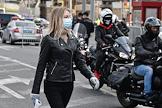 Московский осенний мотофестиваль в честь закрытия сезона прошел от проспекта Академика Сахарова до Парка имени Горького. Девушка-волонтер в медицинской маске во время измерения температуры бесконтактным термометром участников мотопарада.