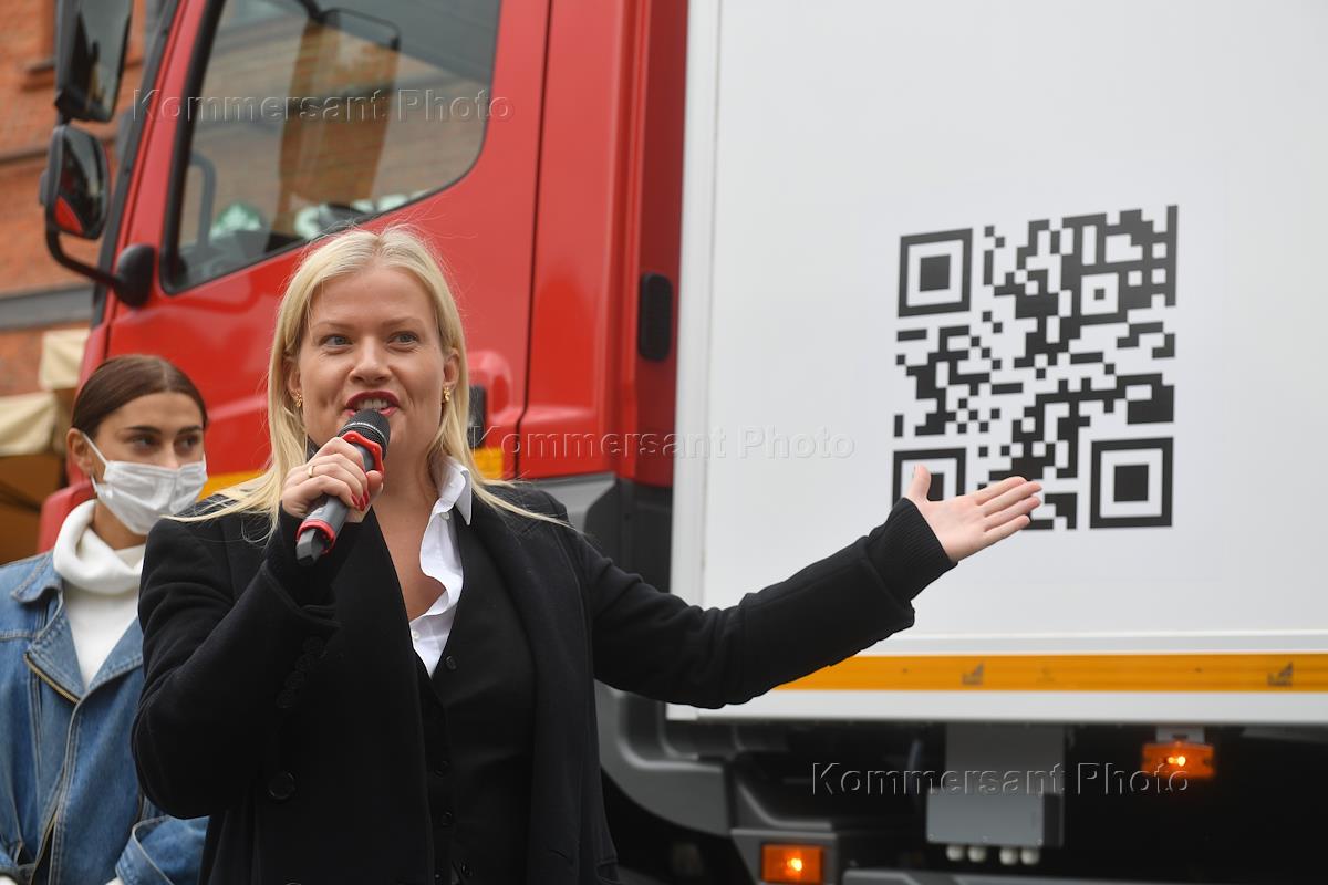 Церемония презентации и передачи в опытную эксплуатацию первого российского крупнотоннажного электрогрузовика MOSKVA, который разработан московской компанией Drive Electro, в фудмолле "Депо. Москва". Электрогрузовик спроектирован по требованиям компании "Магнит". Директор по цепочкам поставок розничной сети "Магнит" Марья Дей во время церемонии.