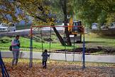 Акция протеста против реконструкции Северного дублера Кутузовского проспекта, из-за которой планируется вырубить парк с трехсотлетними дубами. Женщина с ребенком во время прогулки в парке.
