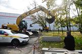 Акция протеста против реконструкции Северного дублера Кутузовского проспекта, из-за которой планируется вырубить парк с трехсотлетними дубами. Строительная техника на месте реконструкции.