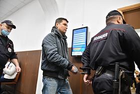 Bail hearing of Ilya Chalykh's case, the Moscow State Academic Conservatory employee accused of murdering the pianist Nikita Kuklin at the Basmanny District Court. Ilya Chalykh (center) of the Moscow State Academic Conservatory before the hearing.