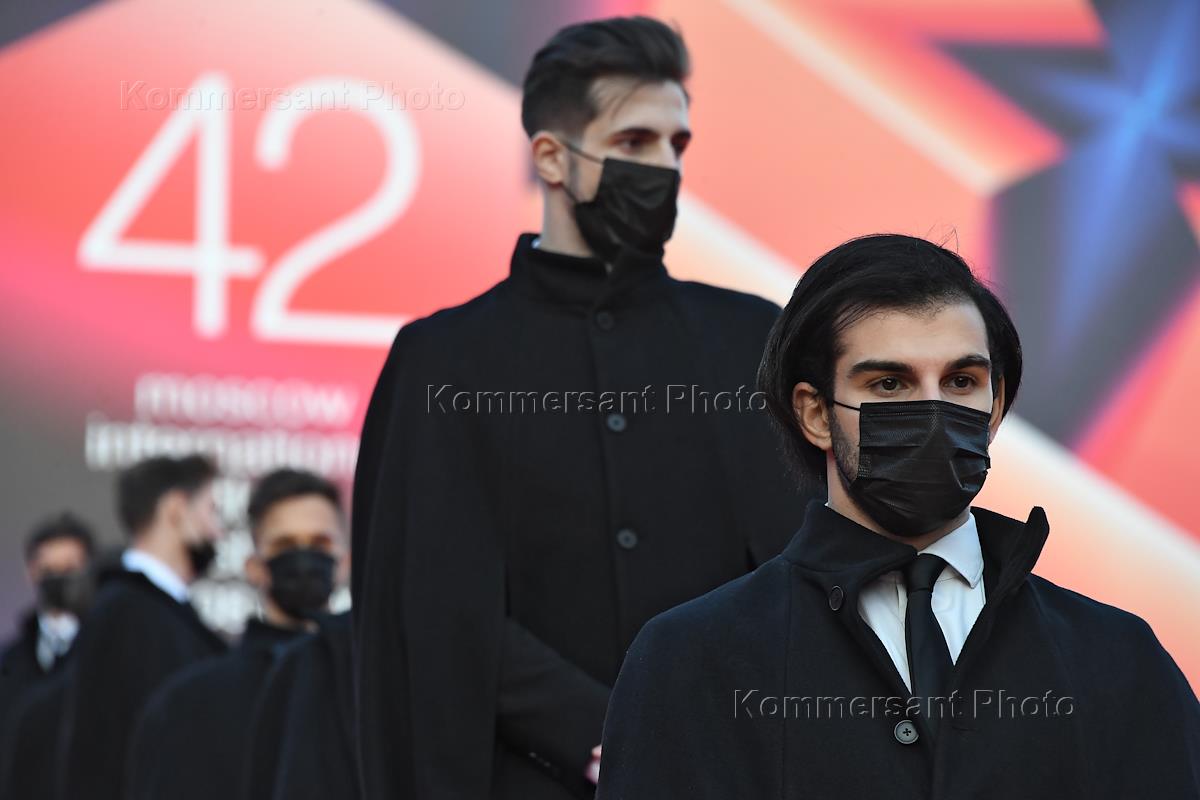 42nd Moscow International Film Festival (MIFF). The opening ceremony. The film crew of the film "Silver Skates" on the red carpet before the ceremony.