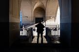 Виды Санкт-Петербурга. Жанровая фотография. Силуэт креста на ограде Армянской Апостольской церкви святой Екатерины на фоне солнца.