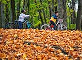Виды Москвы. Жанровая фотография. Велосипедист в осеннем парке.