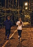 Жанровая фотография. Молодые люди бегут по осеннему лесу.