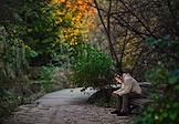 Жанровая фотография. Мужчина сидит на лавочке в парке.