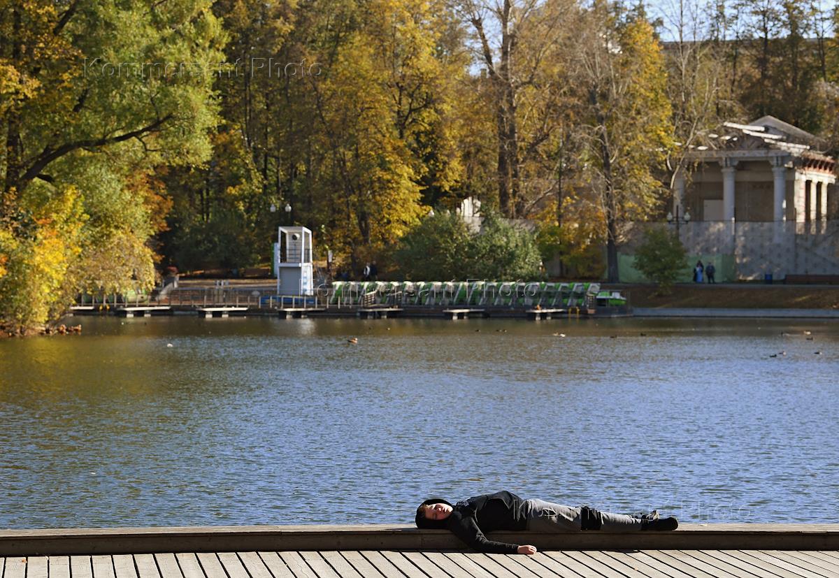 Жанровая фотография. Отдыхающая на берегу пруда в Парке Горького.
