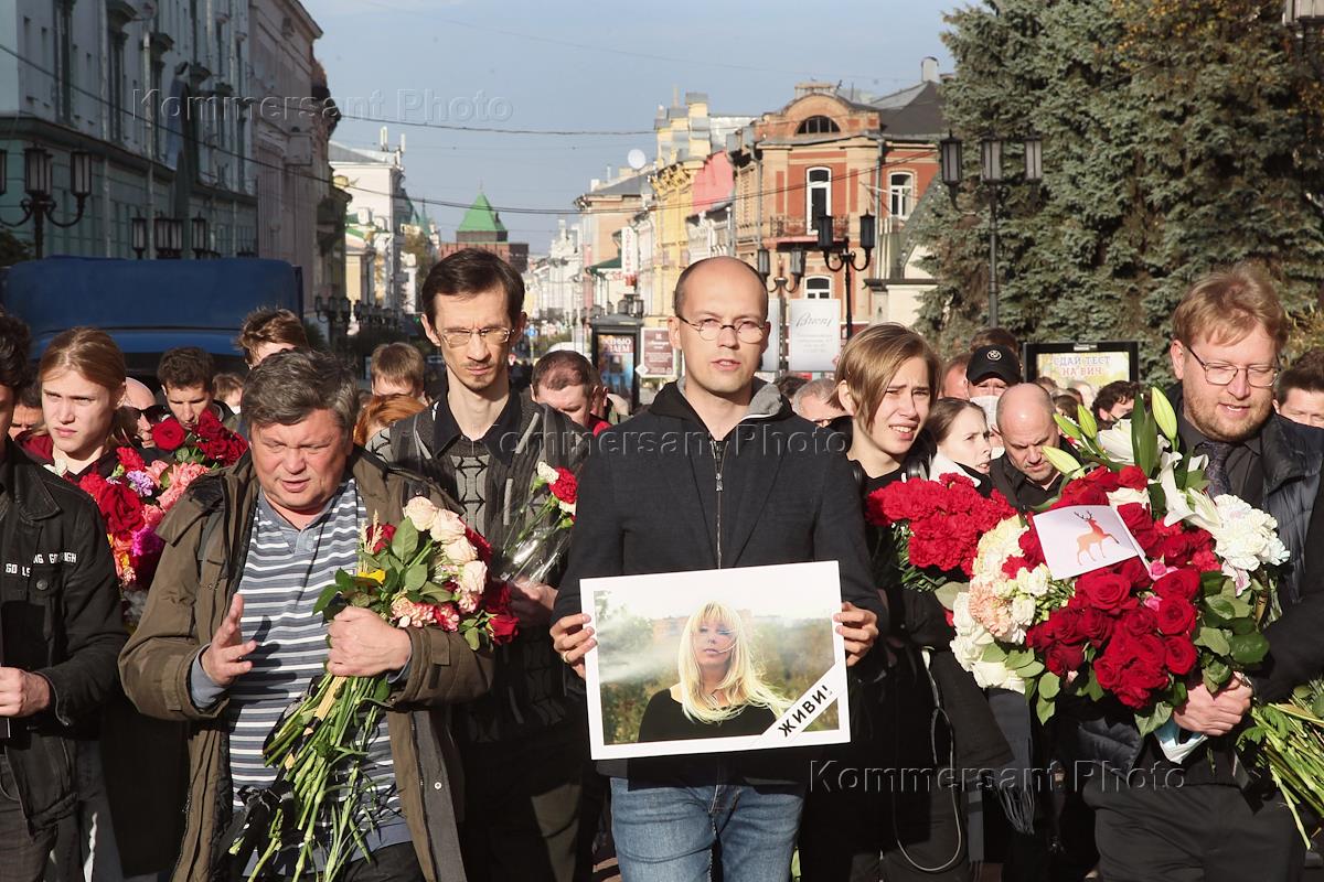 Farewell to the deceased editor-in-chief of the Internet edition "Koza Press" Irina Slavina in the Nizhny Novgorod House of Scientists. A spontaneous memorial at the site of the death of Irina Slavina. On October 2, 2020, Irina Slavina committed suicide near the building of the Main Directorate of the Ministry of Internal Affairs of Russia for the Nizhny Novgorod Region.