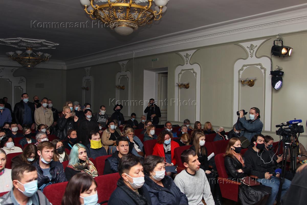 Гражданская панихида по погибшей главному редактору интернет-издания "Коза Пресс" Ирине Славиной в нижегородском доме ученых. 2 октября 2020 года Ирина Славина покончила с собой у здания ГУ МВД России по Нижегородской области.