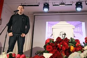 Церемония прощания в нижегородском Доме ученых с главным редактором интернет-издания "Коза Пресс" Ириной Славиной, которая 2 октября 2020 года покончила с собой у здания ГУ МВД России по Нижегородской области. Гражданская панихида. Активист Стас Дмитриевский во время панихиды.