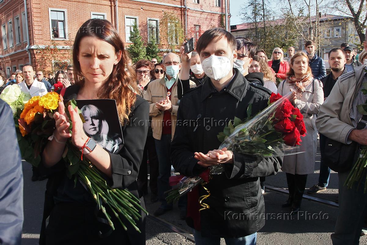 Церемония прощания в нижегородском Доме ученых с главным редактором интернет-издания "Коза Пресс" Ириной Славиной, которая 2 октября 2020 года покончила с собой у здания ГУ МВД России по Нижегородской области.