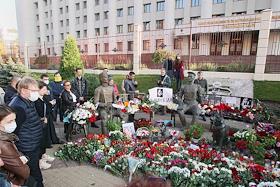 Церемония прощания с главным редактором интернет-издания "Коза Пресс" Ириной Славиной, которая 2 октября 2020 года покончила с собой у здания ГУ МВД России по Нижегородской области. Стихийный мемориал на месте гибели.