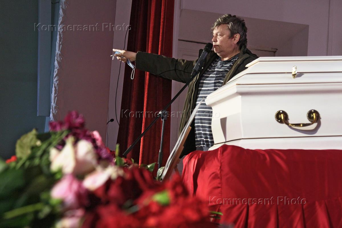 Civil funeral service for journalist Irina Slavina, who burned herself in front of the Nizhny Novgorod Ministry of Internal Affairs, in the Nizhny Novgorod House of Scientists. Activist Stas Dmitrievsky at the funeral.