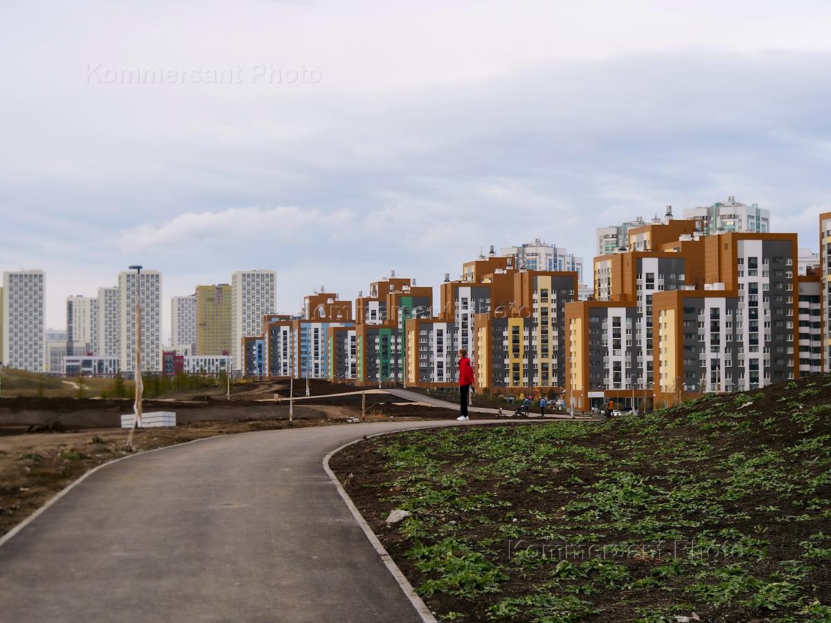 Views of Yekaterinburg in conditions of self-isolation due to coronavirus. academic district. Residential buildings on the banks of the Patrushikha River.