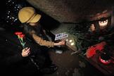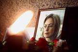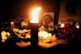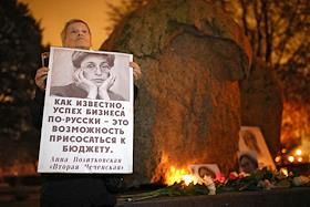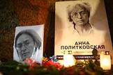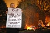 Акция памяти журналистки Анны Политковской у Соловецкого камня на Троицкой площади. Обозреватель "Новой газеты" была застрелена в лифте своего дома 7 октября 2006 года. По этому делу были осуждены шесть человек.