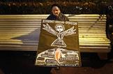 Участница акции памяти журналистки Анны Политковской с плакатом у Соловецкого камня.