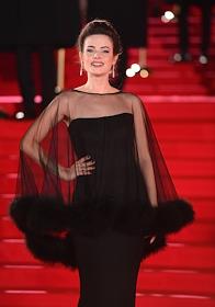 42-й Московский международный кинофестиваль (ММКФ). Церемония закрытия в Московском театре мюзикла. Актриса Татьяна Рыбинец (слева) на красной дорожке перед началом церемонии.