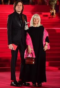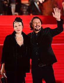 42-й Московский международный кинофестиваль (ММКФ). Церемония закрытия в Московском театре мюзикла. Дизайнер Сергей Сысоев (слева) с супругой Ольгой на красной дорожке перед началом церемонии.