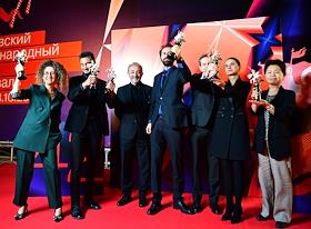 42-й Московский международный кинофестиваль (ММКФ). Церемония закрытия в Московском театре мюзикла. Победители ММКФ во время церемонии.