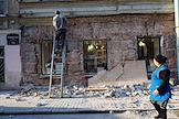Жанровая фотография. Ремонт фасада дома на Гражданской улице.