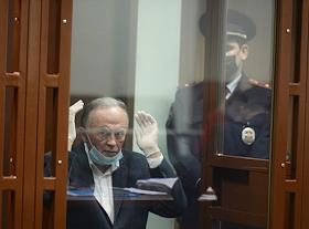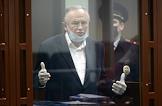 Доцент Санкт-Петербургского государственного университета (СПбГУ) Олег Соколов, обвиняемый в убийстве своей аспирантки СПбГУ Анастасии Ещенко, во время очередного выездного заседания Октябрьского районного суда в здании Городского суда Санкт-Петербурга.