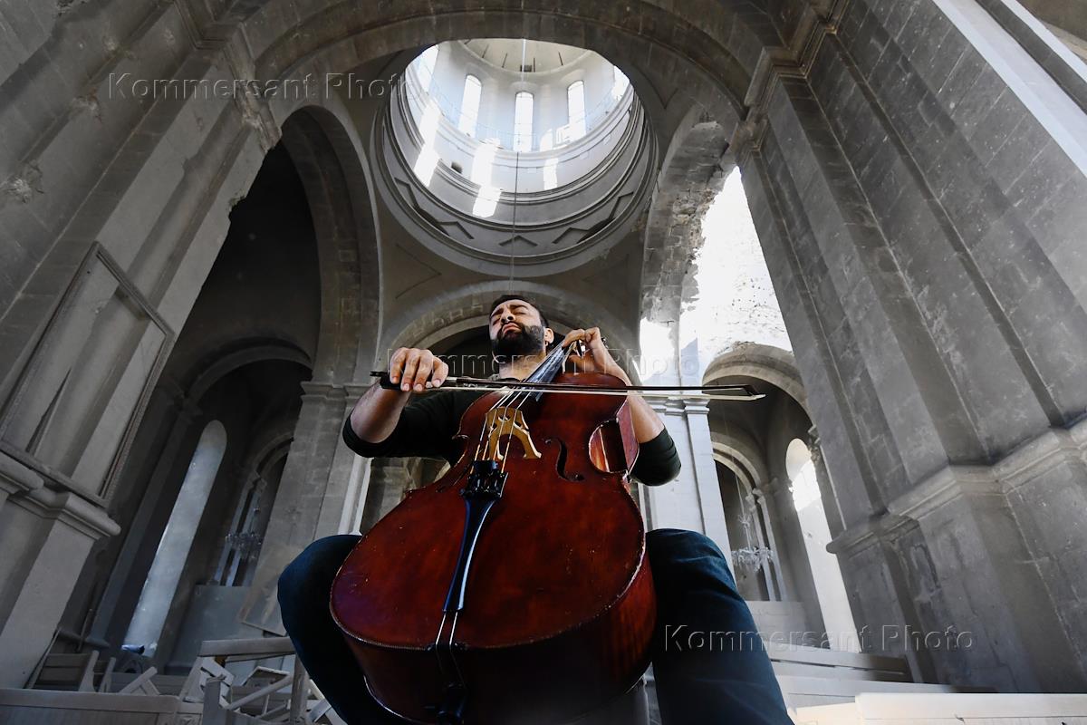 Политическая ситуация в Нагорном Карабахе во время конфликта. Последствия обстрела города Шуши. Бельгийский виолончелист армянского происхождения Севак Аванесян дал короткий концерт в соборе Святого Христа Всеспасителя. Собор был дважды обстрелян 8 октября.