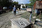 Дефицит питьевой воды в Крыму. Жанровая фотография. Местный житель идет к колонке. Надпись на кране колонки "Воды нет".