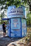 Дефицит питьевой воды в Крыму. Жанровая фотография. Местный житель у ларька с артезианской питьевой водой.