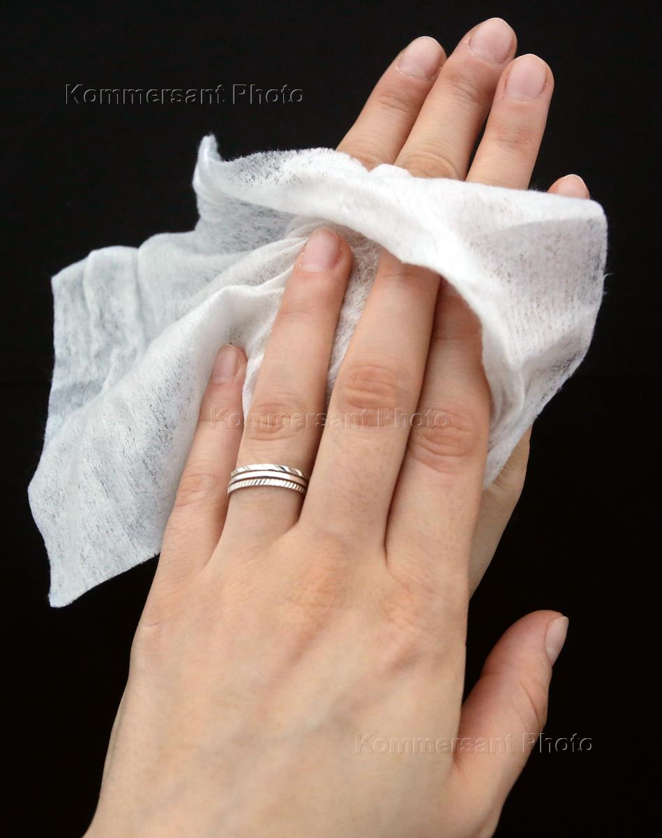 Жанровая фотография. Гигиенический уход за руками с помощью влажной салфетки.