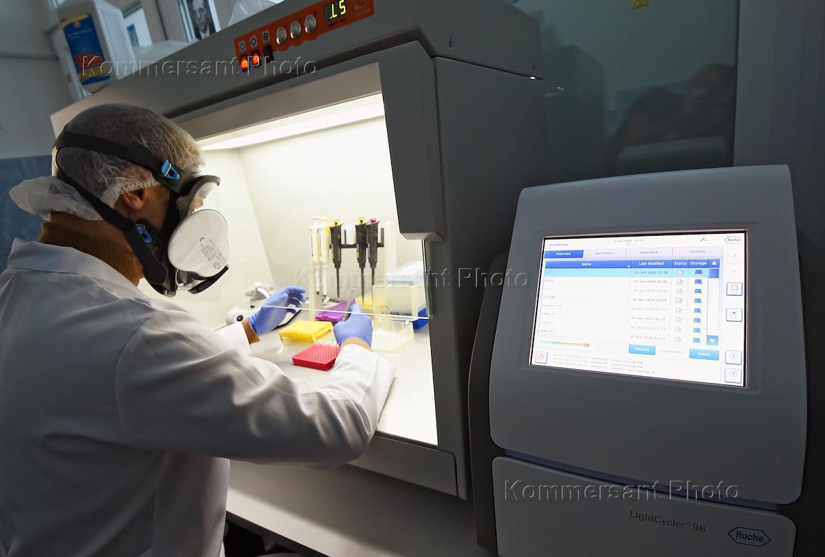 An employee of the Vernadsky Crimean Federal University in the laboratory while testing a new vaccine against coronavirus infection COVID-19, which can be inhaled.