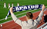 ОЛИМП-Первенство ПФЛ. Группа 3. Сезон 2020/2021, 11 тур. Матч между командами "Сокол" (Саратов) и "Салют Белгород" (Белгород) на стадионе "Локомотив". Болельщик команды "Сокол" на зрительской трибуне перед началом матча.