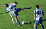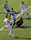 ОЛИМП-Первенство ПФЛ. Группа 3. Сезон 2020/2021, 11 тур. Матч между командами "Сокол" (Саратов) и "Салют Белгород" (Белгород) на стадионе "Локомотив". Игрок команды "Сокол" Артем Молодцов (второй слева) во время матча.