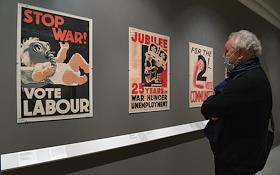 Пресс-показ выставки "Реклама как искусство. Британский постер конца XIX – начала XX века из собрания ГМИИ им. А.С. Пушкина" пошел в Государственном музее изобразительного искусства (ГМИИ) имени А.С.Пушкина. Посетители на выставке.